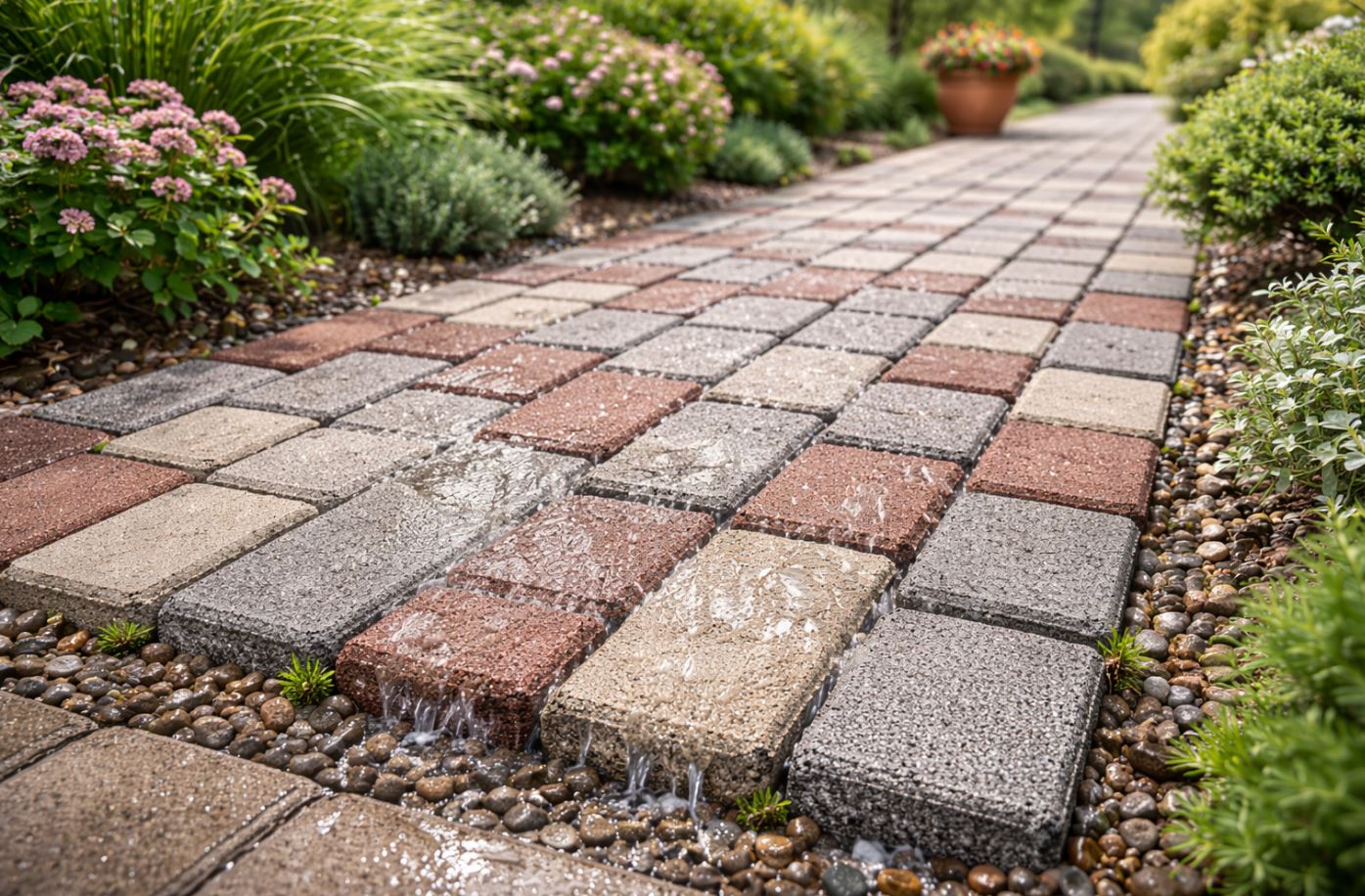隨著城市氣候越來越極端,「透水磚」開始成為社區道路、庭院與住宅鋪面的熱門選擇。